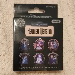 Unopened Individual Pin Badge Portrait Box is an Open Edition pin in the Pin Badge Portraits Full Boxed Set 7-pin set from the Disney Story Beyond - Haunted Mansion Mystery Collection pin series. It was originally released on , 2023 and was available from Tokyo Disneyland Resort .
