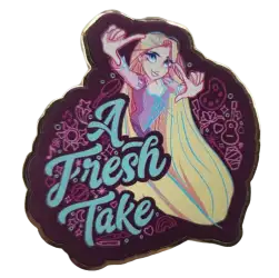 A Fresh Take - Rapunzel ONLY is an Open Edition pin in the Full Set 4-pin set from the Princess Graffiti Lanyard Starter Set pin series. It was originally released on , 2022 and was available from Multiple Sources (WDW, DLR, etc.).