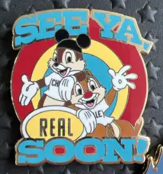 See Ya Real Soon! - Chip and Dale is a Limited Release pin from the Adventures By Disney - Southern California pin series. It was originally released on , 2008 and was available from Adventures by Disney .