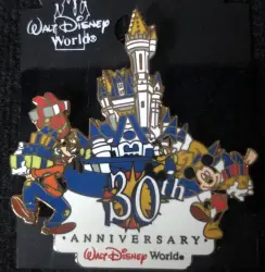 Mickey and Goofy in Front of the Castle With Gifts is an Open Edition pin from the Walt Disney World 30th Anniversary pin series. It was originally released on , 2001 and was available from Walt Disney World .