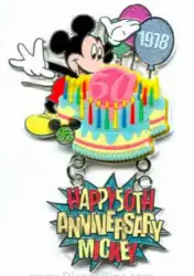 1978 - Mickey Mouse's 50th Celebration is a Limited Edition (LE) 2500 pin from the 35 Magical Milestones pin series. It was originally released on , 2006 and was available from Walt Disney World .