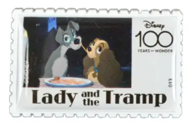 013 Lady and the Tramp is an Open Edition pin from the IKNOWK - Disney 100 Stamp Series pin series. It was originally released in May, 2023 and was available from an Officially Licensed Disney trading pin vendor (see description for more information).