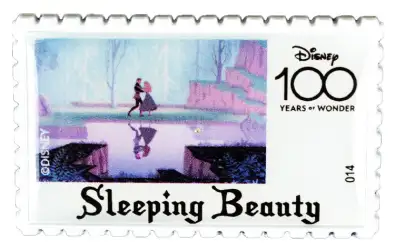 014 Sleeping Beauty is an Open Edition pin from the IKNOWK - Disney 100 Stamp Series pin series. It was originally released in May, 2023 and was available from an Officially Licensed Disney trading pin vendor (see description for more information).