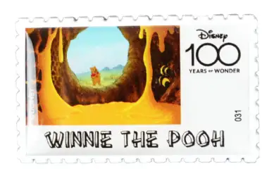 031 Winnie the Pooh is an Open Edition pin from the IKNOWK - Disney 100 Stamp Series pin series. It was originally released in May, 2023 and was available from an Officially Licensed Disney trading pin vendor (see description for more information).