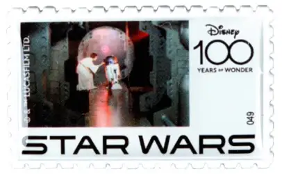 049 Star Wars is an Open Edition pin from the IKNOWK - Disney 100 Stamp Series pin series. It was originally released in May, 2023 and was available from an Officially Licensed Disney trading pin vendor (see description for more information).