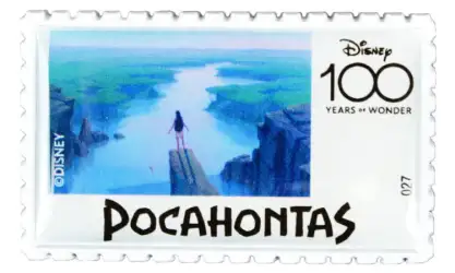 027 Pocahontas is an Open Edition pin from the IKNOWK - Disney 100 Stamp Series pin series. It was originally released in May, 2023 and was available from an Officially Licensed Disney trading pin vendor (see description for more information).
