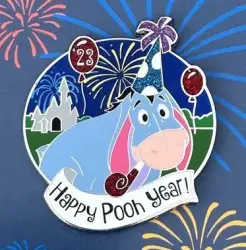 Happy Pooh Year - Eeyore is a Limited Edition (LE) 3000 pin from the New Year's Eve/Day pin series. It was originally released on , 2022 and was available from Disneyland Resort .