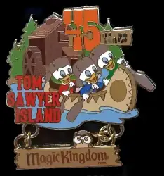 Tom Sawyer Island 45 Years - Huey, Dewey Louie Canoeing is a Limited Edition (LE) 500 pin from the Cast Exclusive Attraction Anniversaries Series pin series. It was originally released on , 2015 and was available from Walt Disney World .