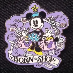 Minnie Mouse - Born to Shop is an Open Edition pin. It was originally released on , 2014 and was available from Multiple Sources (WDW, DLR, etc.).
