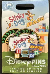 Slinky Dog Dash 5th Anniversary is a Limited Edition (LE) 3000 pin from the Attraction Anniversaries pin series. It was originally released on , 2023 and was available from Walt Disney World .