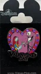 Jack and Sally in a Red and Pink Jeweled Heart is a Limited Release pin from the Valentine's Day pin series. It was originally released in January, 2006 and was available from Hong Kong Disneyland .