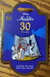 Prince Ali Parade Slider is a Limited Edition (LE) 4000 pin from the Aladdin 30th Anniversary pin series. It was originally released on , 2022 and was available from Multiple Sources (WDW, DLR, etc.).