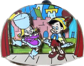 Pinocchio on Stage with Russian Marionette is an Open Edition pin from the Pinocchio pin series. It was originally released in January, 2022 and was available from Multiple Sources (WDW, DLR, etc.).