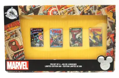 Marvel Comic Covers Box Set is a Limited Edition (LE) 500 4-pin set from the D23 Expo 2017 pin series. It was originally released on , 2017 and was available from Disney Fan Club .