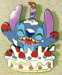 Strawberry Birthday Cake is an Open Edition pin from the Fantasy Pin Series pin series. It is an Unlicensed (Fantasy) pin, so therefore it is not allowed to be traded in the Disney Parks.