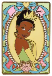 Tiana is a Limited Edition (LE) 300 pin from the Pink A La Mode (PALM) - Princess Stained Glass pin series. It was originally released on , 2023 and was available from an Officially Licensed Disney trading pin vendor (see description for more information).