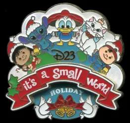 D23 its a small world Holiday is a Limited Edition (LE) 1500 pin from the it's a small world holiday pin series. It was originally released on , 2010 and was available from Disneyland Resort .