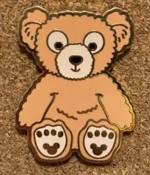 Sitting Duffy Bear is a pin from the Fantasy Series: Duffy pin series. It is an Unlicensed (Fantasy) pin, so therefore it is not allowed to be traded in the Disney Parks.