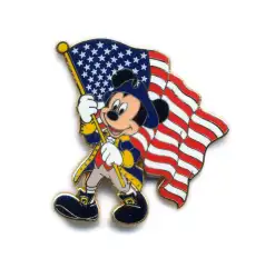 Colonial Mickey Mouse Carrying the American (US) Flag is an Open Edition pin from the Patriotic Mickey pin series. It was originally released in June, 2011 and was available from Multiple Sources (WDW, DLR, etc.).