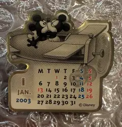 January - Mickey and Minnie is a Limited Edition (LE) pin from the Sweet Kiss Calendar 2003 Framed Set pin series. It was originally released on , 2002 and was available from Disney Store Japan .