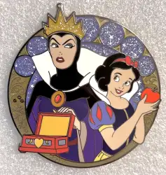 Evil Queen & Snow White is a Limited Edition (LE) 75 pin from the Fantasy Pin Series: Da Vinci Fantasy Pins pin series. It was originally released on , 2022 and is an Unlicensed (Fantasy) pin, so therefore it is not allowed to be traded in the Disney Parks.
