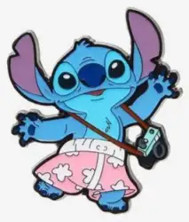 Stitch in Pink Swim Trunks with Camera is an Open Edition pin from the Stitch Beach Pastels Blind Box pin series. It was originally released in July, 2023 and was available from Loungefly .