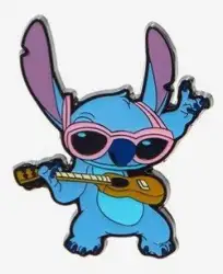 Stitch with Ukulele and Sunglasses is an Open Edition pin from the Stitch Beach Pastels Blind Box pin series. It was originally released in July, 2023 and was available from Loungefly .