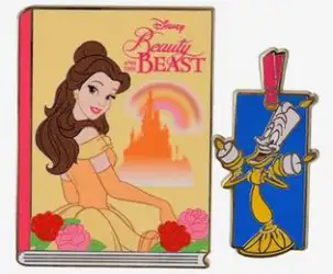 Belle & Lumiere is an Open Edition 2-pin set from the BoxLunch - Princess Books & Bookmarks pin series. It was originally released on , 2023 and was available from an Officially Licensed Disney trading pin vendor (see description for more information).