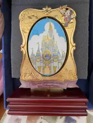 Gold Frame Cinderella Castle Spinner with Stand is a Limited Edition (LE) 1500 pin from the Happiest Celebration on Earth pin series. It was originally released on , 2006 and was available from Walt Disney World .