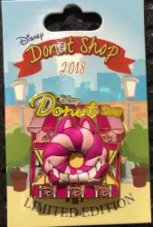 Cheshire Cat is a Limited Edition (LE) 3000 pin from the Disney Donut Shop Series pin series. It was originally released on , 2018 and was available from Multiple Sources (WDW, DLR, etc.).