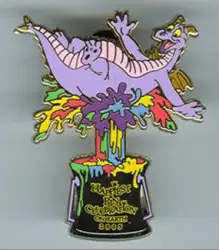Figment's Paint Bucket is a Limited Edition (LE) 1000 pin from the Happiest Pin Celebration On Earth pin series. It was originally released in September, 2005 and was available from Walt Disney World .