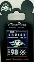 Disney Cruise Line - ESTd 98 is an Open Edition pin. It was originally released in January, 2019 and was available from Disney Cruise Line .
