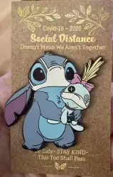 Masked Stitch and Scrump is a Limited Release pin from the Fantasy Pin Series: Social Distance pin series. It is an Unlicensed (Fantasy) pin, so therefore it is not allowed to be traded in the Disney Parks.