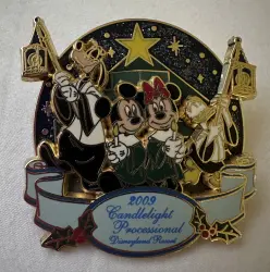 2009 - Mickey, Minnie, Donald, and Goofy is a Limited Edition (LE) 1000 pin from the Disneyland Candlelight Processional pin series. It was originally released in November, 2009 and was available from Disneyland Resort .