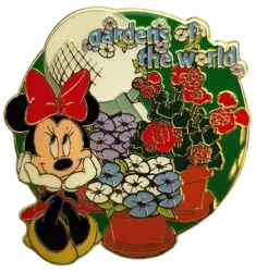 Minnie Mouse is a Limited Release pin from the Gardens of the World Tour pin series. It was originally released in January, 2015 and was available from Walt Disney World .