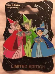 Three Fairies - Flora, Fauna and Merryweather is a Limited Edition (LE) 250 pin from the 60th Anniversary Diamond Celebration of Disneyland pin series. It was originally released on , 2016 and was available from Walt Disney Imagineering .