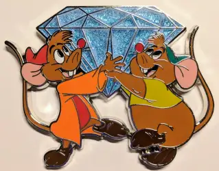 Gus and Jaq is a Limited Edition (LE) 250 pin from the 60th Anniversary Diamond Celebration of Disneyland pin series. It was originally released on , 2016 and was available from Walt Disney Imagineering .