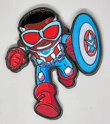 Captain America (Sam Wilson) is a Limited Release pin from the SDCC 2023 - Marvel Skottie Young pin series. It was originally released on , 2023 and was available from an Officially Licensed Disney trading pin vendor (see description for more information).