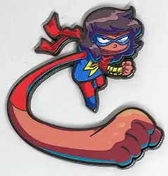 Ms. Marvel is a Limited Release pin from the SDCC 2023 - Marvel Skottie Young pin series. It was originally released on , 2023 and was available from an Officially Licensed Disney trading pin vendor (see description for more information).