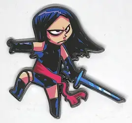 Psylocke is a Limited Release pin from the SDCC 2023 - Marvel Skottie Young pin series. It was originally released on , 2023 and was available from an Officially Licensed Disney trading pin vendor (see description for more information).