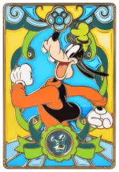 Goofy is a Limited Edition (LE) 300 pin in the Complete Set 6-pin set from the Pink A La Mode (PALM) - Sensational Six Stained Glass Series pin series. It was originally released on , 2023 and was available from an Officially Licensed Disney trading pin vendor (see description for more information).