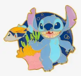 Stitch Underwater with Coral and Tropical Fish is an Open Edition pin from the BoxLunch - Lilo & Stitch pin series. It was originally released on , 2023 and was available from Loungefly .
