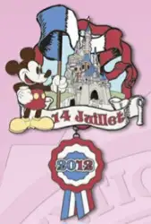 14 Julliet 2012 Mickey with French flag ribbon dangle is a Limited Edition (LE) 400 pin from the Bastille Day pin series. It was originally released on , 2012 and was available from Disneyland Resort Paris .