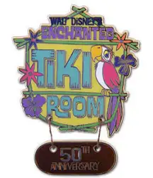 50th Anniversary Logo is a Limited Edition (LE) 1500 pin from the Enchanted Tiki Room 50th Anniversary pin series. It was originally released on , 2013 and was available from Disneyland Resort .