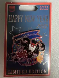 Disney Cruise Line Happy New Year 2022 is a Limited Edition (LE) 2000 pin from the New Year's Eve/Day pin series. It was originally released in December, 2022 and was available from Disney Cruise Line .