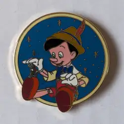 Pinocchio Sitting with Jiminy Cricket - Blue and Yellow Star Circle is a Limited Edition (LE) 2500 pin. It was originally released in January, 2002 and was available from Disney Store UK .