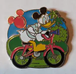 Donald Cycling is an Open Edition pin from the Cast Lanyard Collection IV - Recreation pin series. It was originally released in October, 2005 and was available from Walt Disney World .
