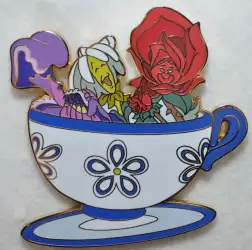 Rose & Flowers is a Limited Edition (LE) 250 pin from the WDI Characters on Mad Tea Party Collection pin series. It was originally released on , 2015 and was available from Walt Disney Imagineering .