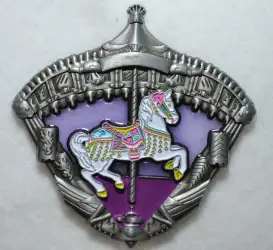 King Arthur Carrousel is a Limited Edition (LE) 300 pin from the 3D Stained Glass Attractions pin series. It was originally released on , 2015 and was available from Walt Disney Imagineering .