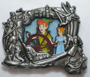 Peter Pan's Flight is a Limited Edition (LE) 300 pin from the 3D Stained Glass Attractions pin series. It was originally released on , 2015 and was available from Walt Disney Imagineering .